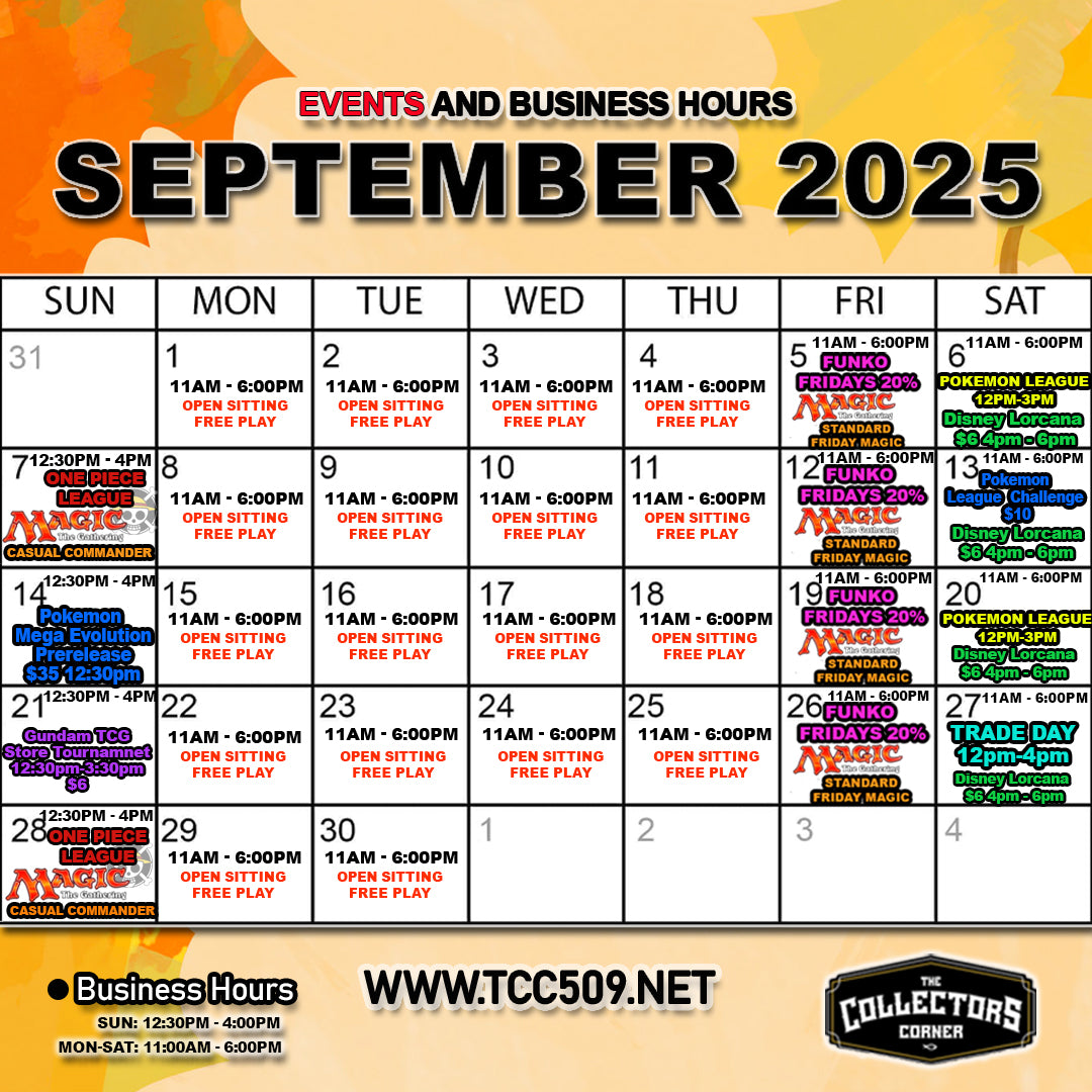 Here at The Collectors Corner we hold many events for Pokemon TCG players like League Challenges, Cups, and Free-play locally! We also hold events for collectors once on the last Saturday of every month called our Pokemon Trade Day!
